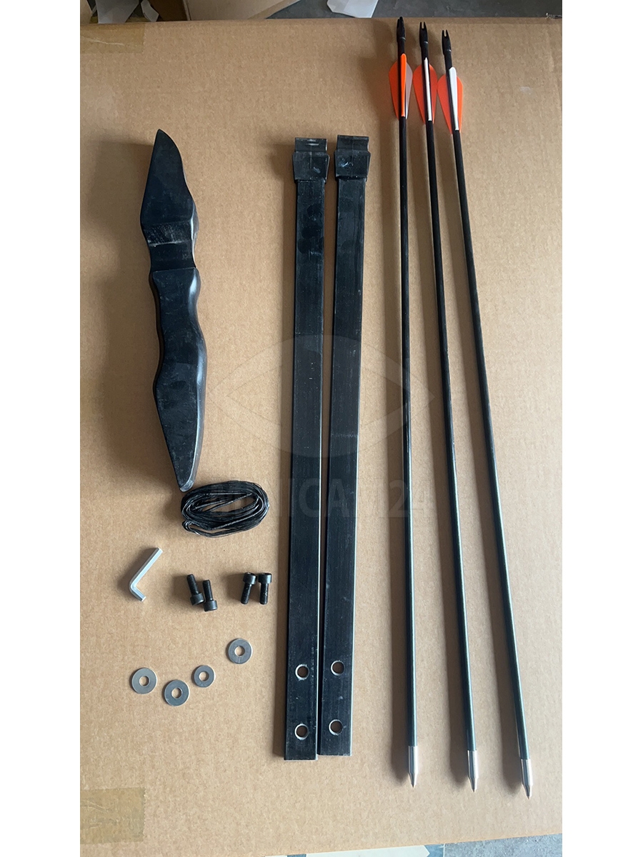 Лук имеет длину 140 см, а комплект из 3 стрел длиной 80 см изготовлен из прочного фибергласса (стекловолокна) толщиной 6 мм, обеспечивающего долговечность и стабильность в полете. В комплект также входят болты и шестигранник для удобной настройки и сборки.